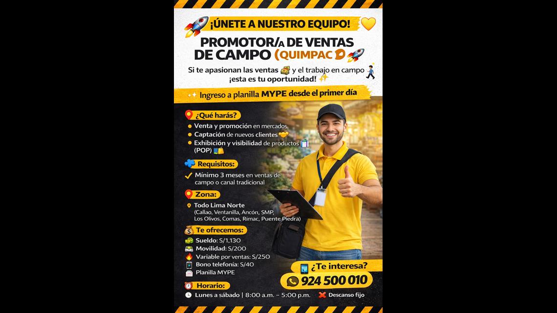 Promotor(a) de Ventas de Campo / Lima Norte / Ingreso Inmediato - Experiencia en Canal Tradicional / Salario base + Comisiones + Movilidad
